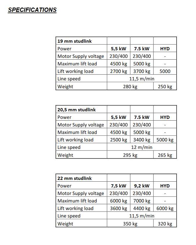 | LIFT WORKING LOAD | 3300 Kg | 4000 Kg | 5000 Kg |