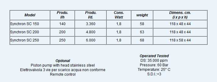 The peculiarity of synchron watermakers is to be made of three sections, that in case of necessity,in the board installation, in limited spaces, can be divided in a simple way.