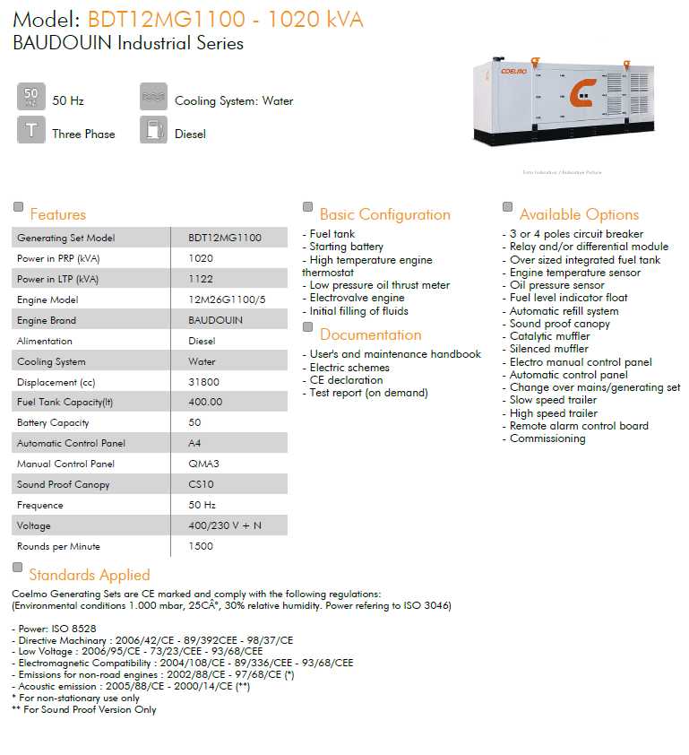 – Automatic insertion of the Generating Set as main source of electrical energy as soon as the working parameters are reached;