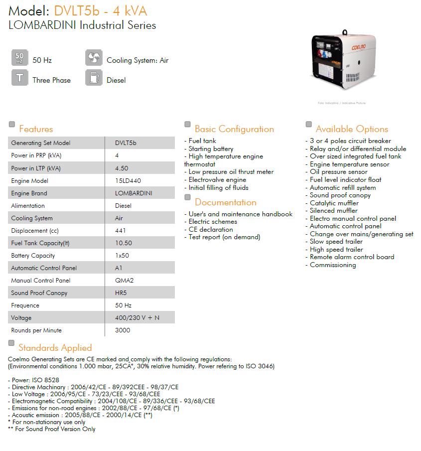 A magneto-thermal 3 pole circuit breaker (4 pole on request) guarantees the electrical protection of the COELMO® Generating Set.