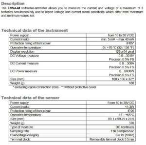 – Measurement of current, voltage, power for a maximum of