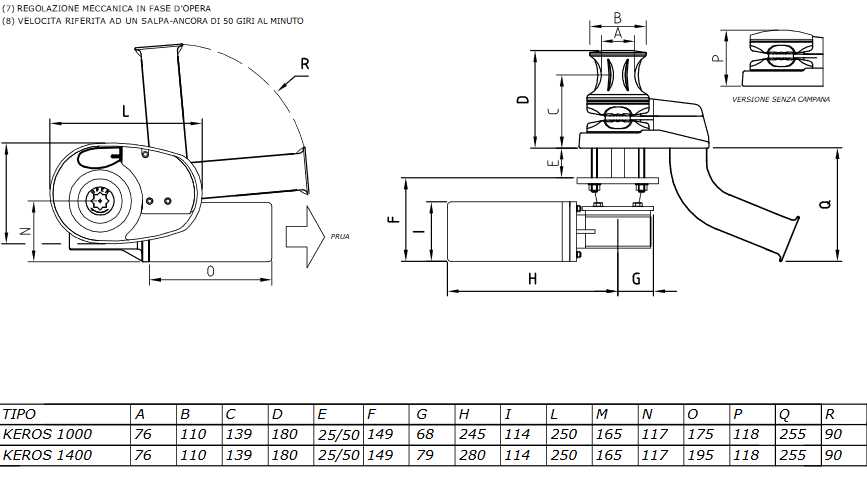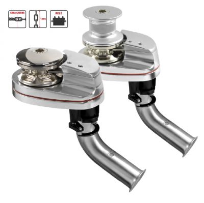 Anodyzed aluminium alloy windlass. Available in high or low profile, with different drives and recommended for boats up to 16 m. KEROS has a unique chain distribution system (ECS) integrated into its mechanism. This innovative system prevents stacking of the chain in the forepeak, and is completely mechanical and has a very small footprint. The windlass can use the 6 mm, 8 mm or 10 mm chains and is equipped with rope tensioner. Comes with built-in chain counter sensor.